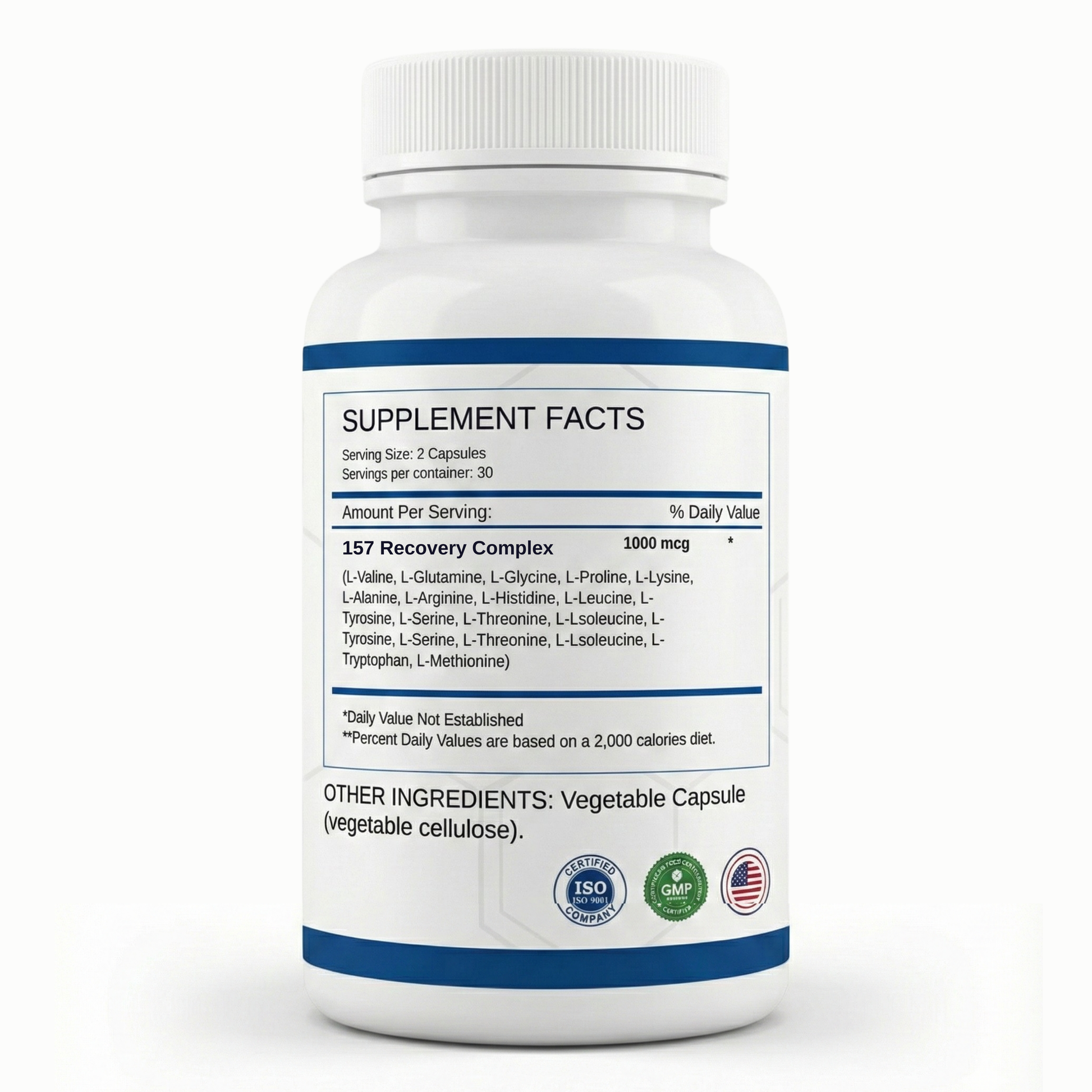 (L-Valine, L-Glutamine, L-Glycine, L-Proline, L-Lysine, L-Arginine, L-Histidine, L-Leucine, L-Tyrosine, L-Serine, L-Threonine, L-Isoleucine, L-Tryptophan)
