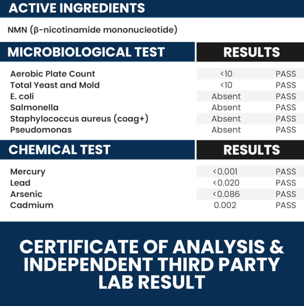 NMN supports energy, focus, and longevity by encouraging healthy cellular repair and natural NAD⁺ production.